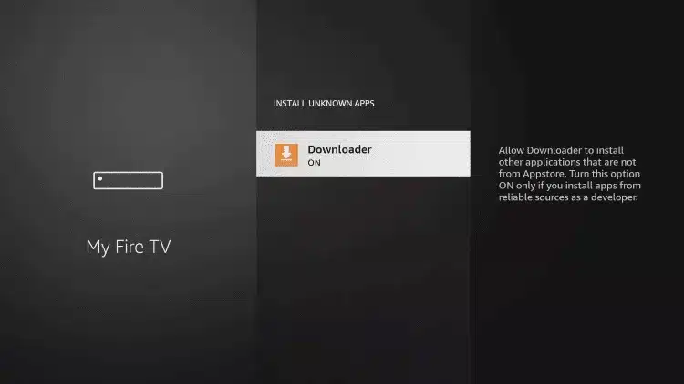 - Suchen Sie die Anwendung „Downloader“ und klicken Sie darauf. Dadurch werden die „Unbekannten Quellen“ für Downloader aktiviert, was das Sideloading auf Ihrem Gerät ermöglicht.